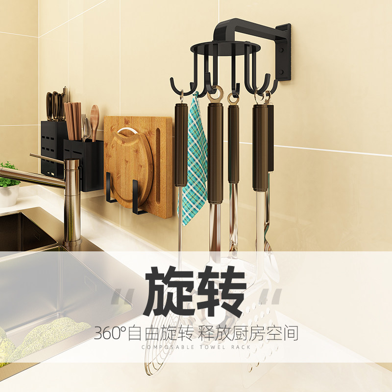 Kitchen good things Daquan rotating hook corner hanging spoon shovel put pot shovel shelf hanger wall-mounted storage