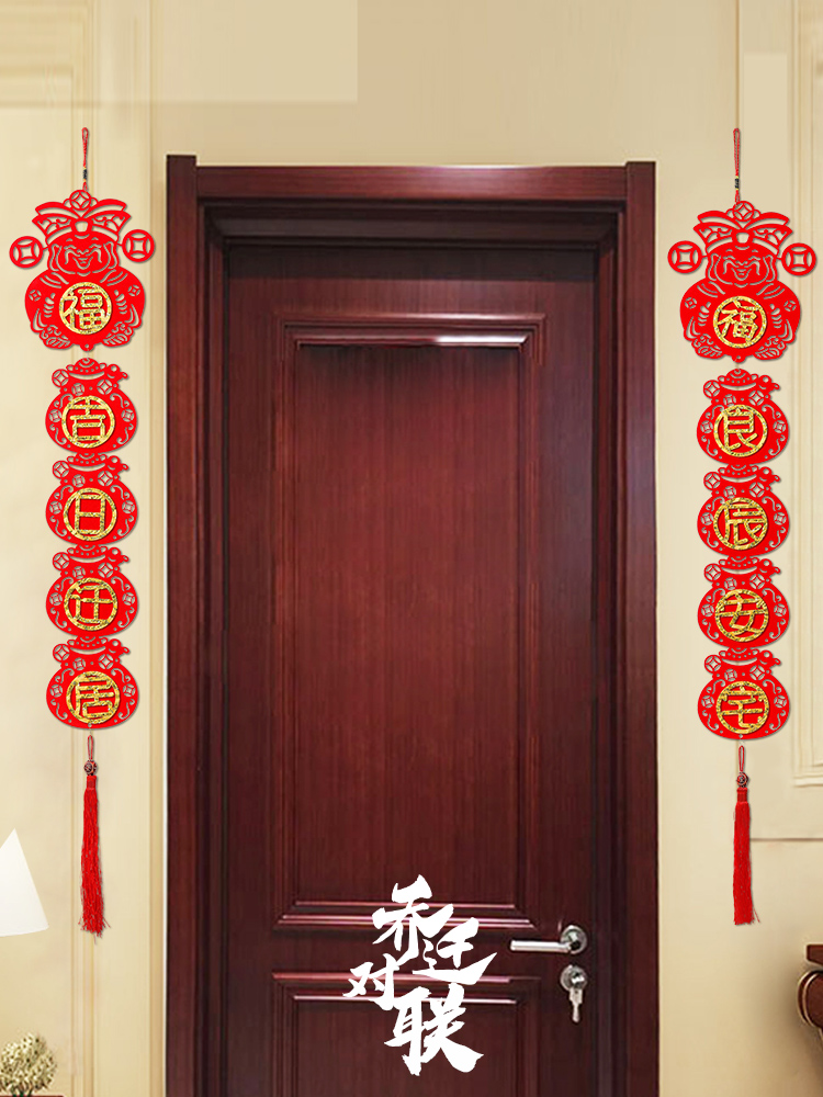 Financial and God Couplets-Square Door Stickway-Round door post with lantern Fook couplets for the whole family Focouplets Double fish couplets for the couplets