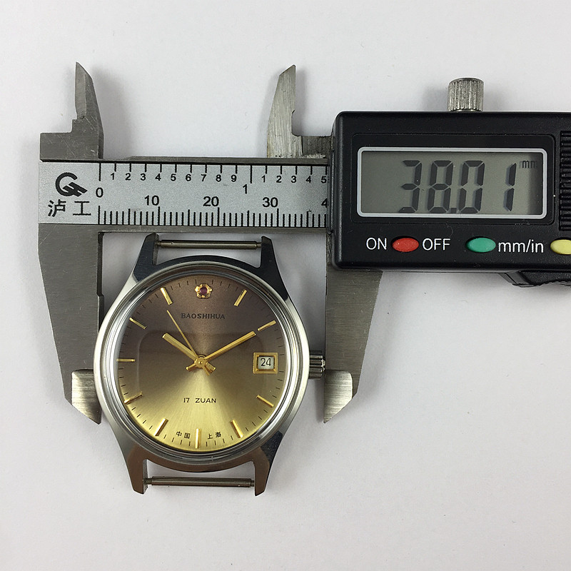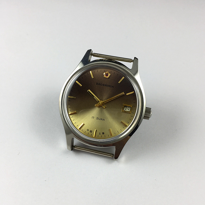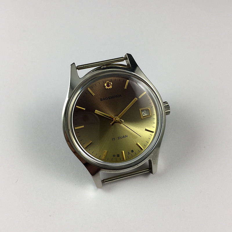 Original stock Out of stock Shanghai Watches Two Factories Jewel Flowers Cards Single Calendar Strips of Tea Color noodles Manual Mechanical diameter 38MM