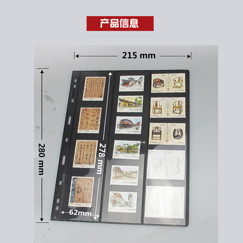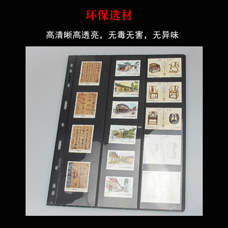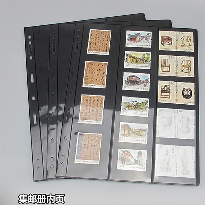 Mintai PCCB Sets Mailbook Stamps Collections Loose-leaf Inner Page 9 Holes 3 Vertical Black Bottom Double Face 10 sheets