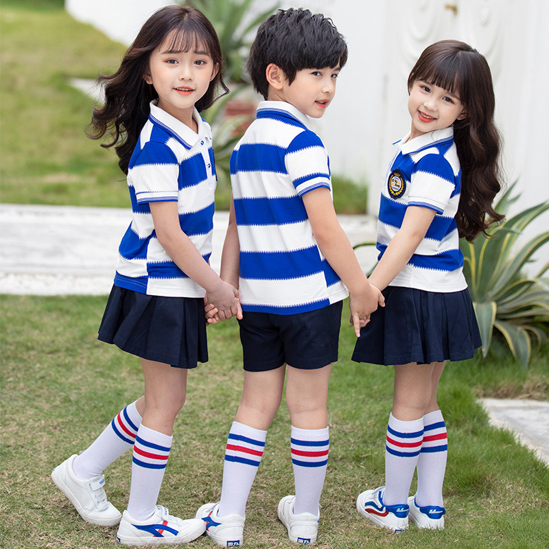 2020 Summer School Uniform Suit Academy Wind Elementary School Kids Yinglun Wind Banfu Custom Short Sleeve Kindergarten Garden Clothing Summer Clothing