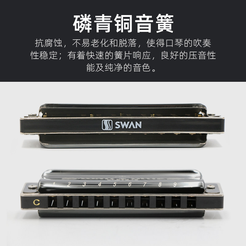 Swan Harmonica Blues Harmonica Harmonica ten 10 Holes C Tune Blues Professional Playing Class Beginner Student Introductory