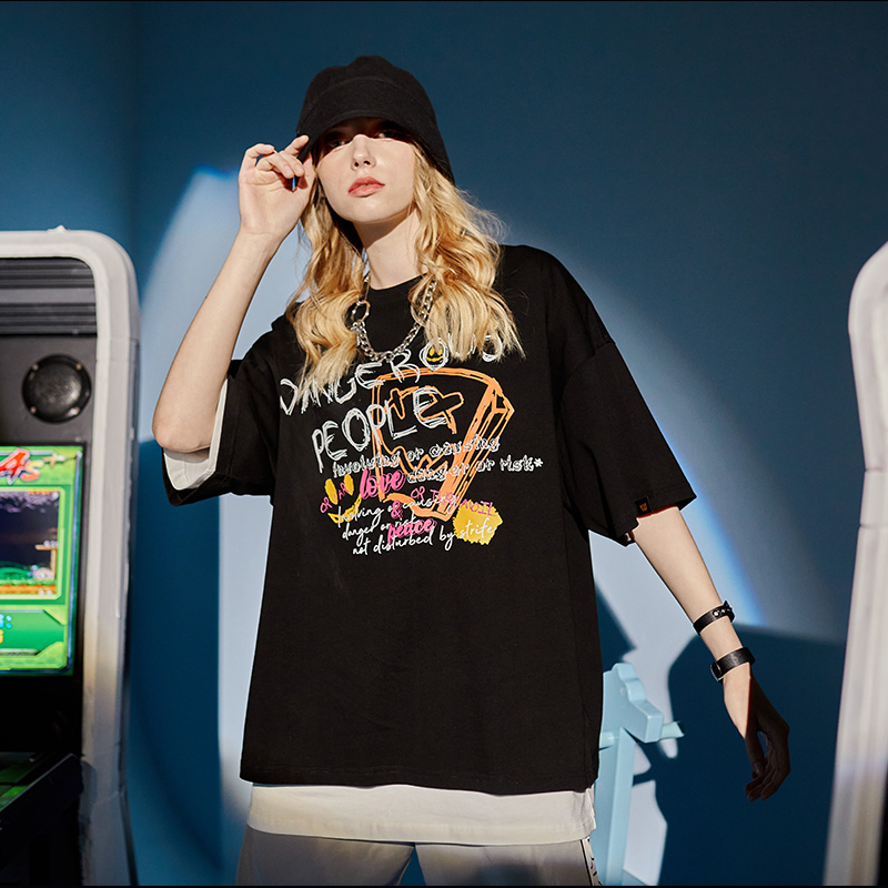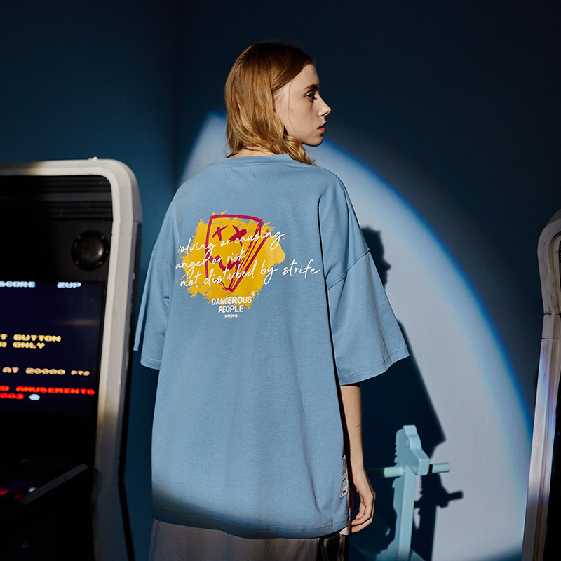 Dangerouspeople Xue's Modesty P Graffiti Short Sleeve T-Shirt Summer Casual Ins Trend Foggy Blue T-shirt
