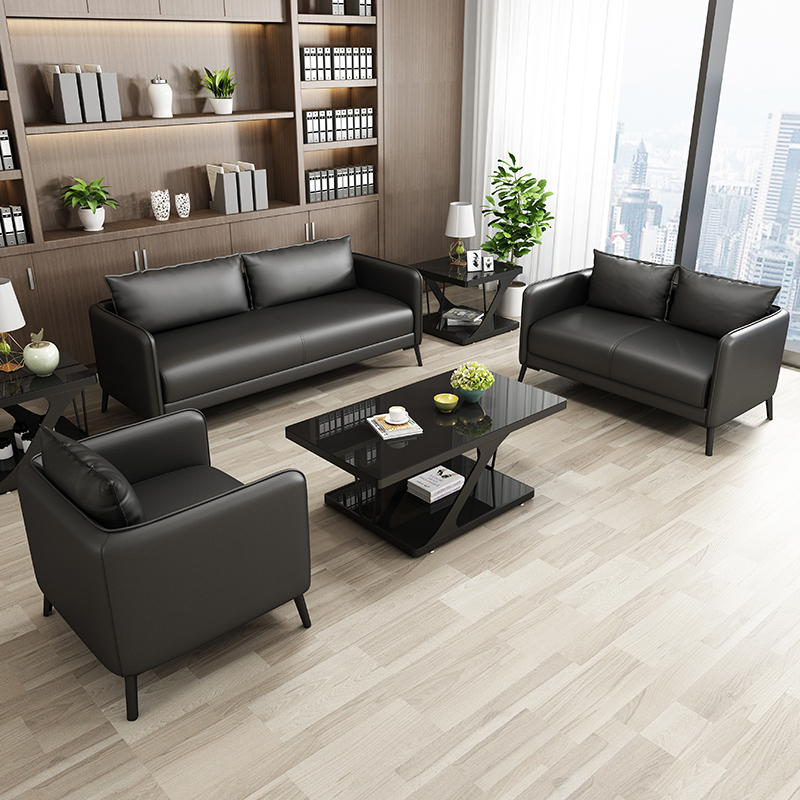 Office sofas minimalist modern business reception room Guest Area Small Family Type Office Real Leather Sofa Tea Table Combinations