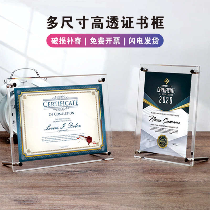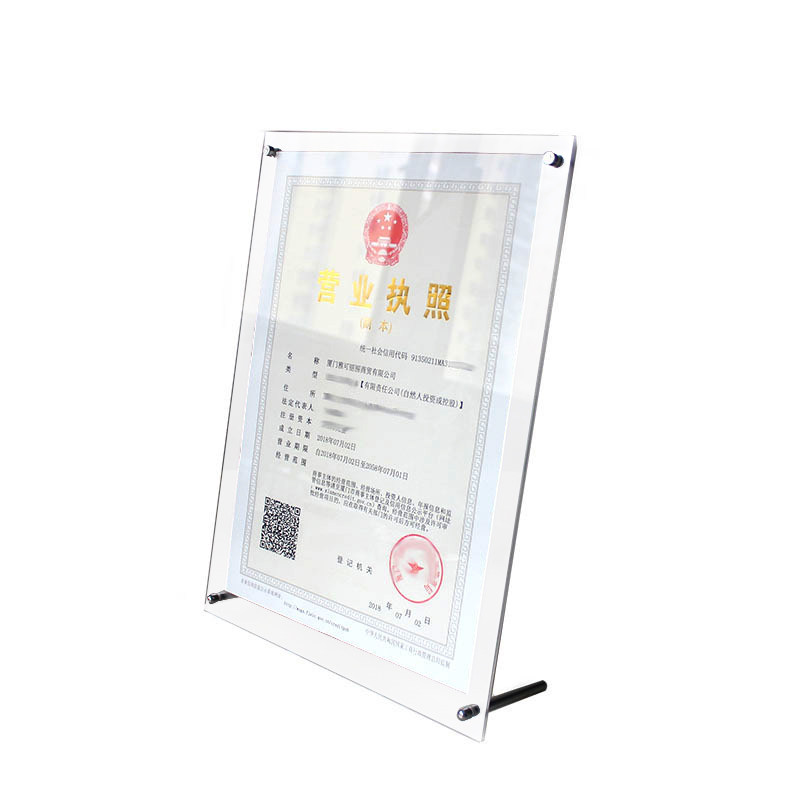 Business license a4 glass photo frame table transparent custom 7 inch acrylic wall hanging honor authorization certificate framed