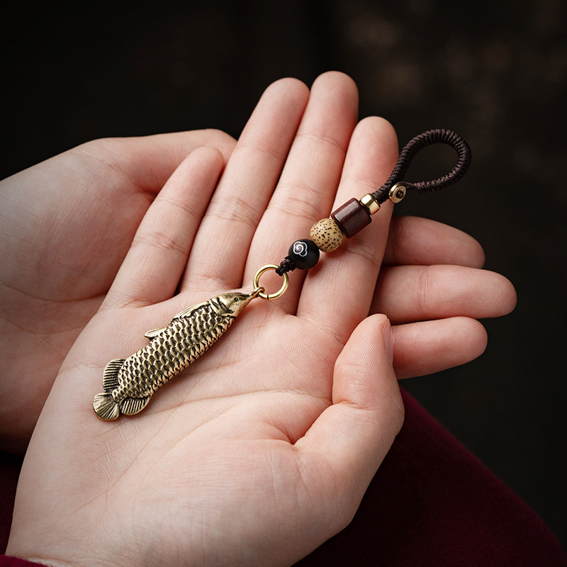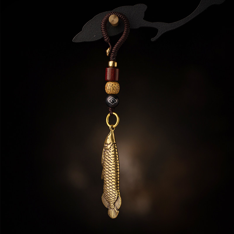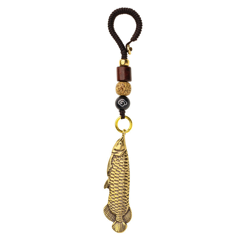 Hand-woven rope pure brass Arowana car key chain small pendant pendant pendant pendant men's tide has more fish every year
