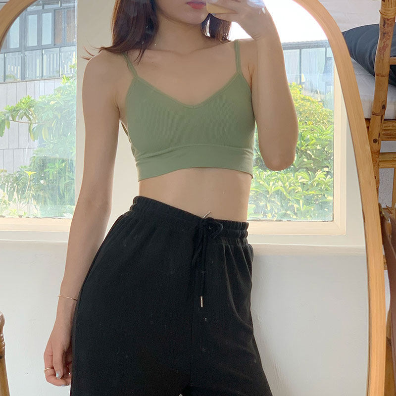 Sleepy rabbit short small camisole women with chest pad bottom inside with beautiful back outside wearing net red sports underwear top