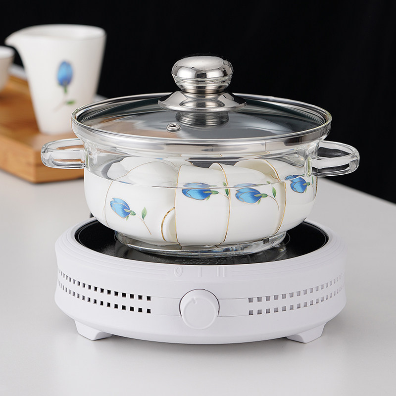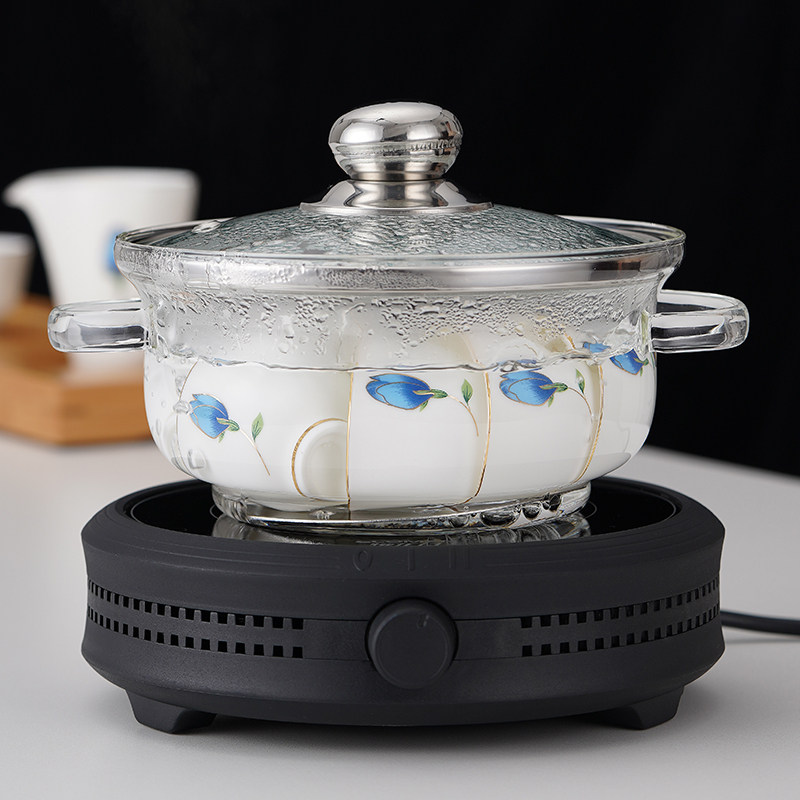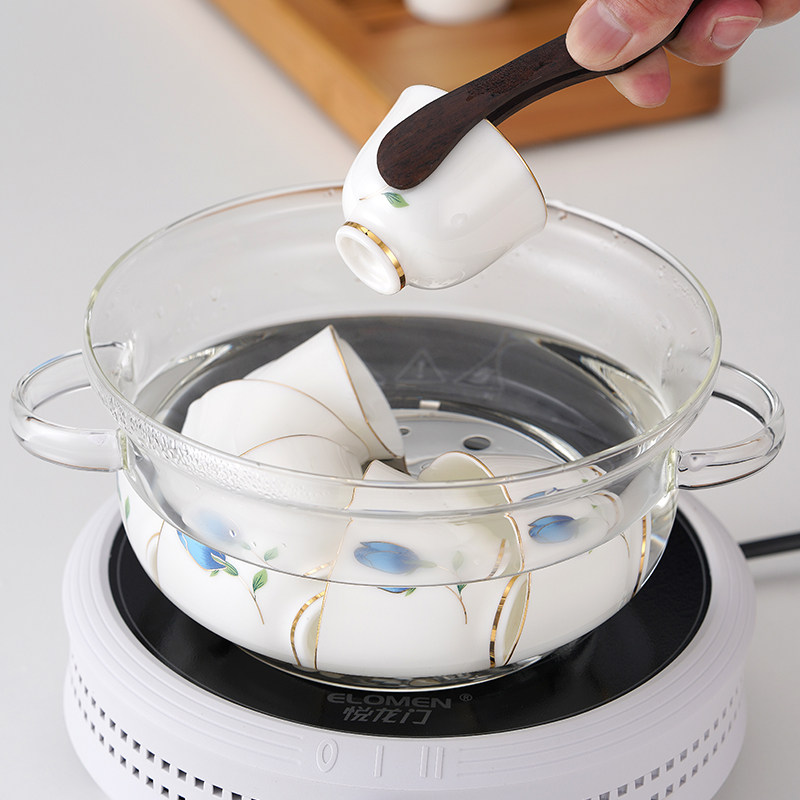 Black crystal furnace disinfection pot suit thickened heat resistant glass tea washing with cover cup washing induction cooker cooking tea cup disinfection pot