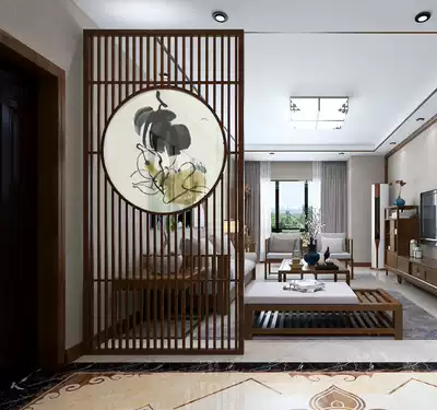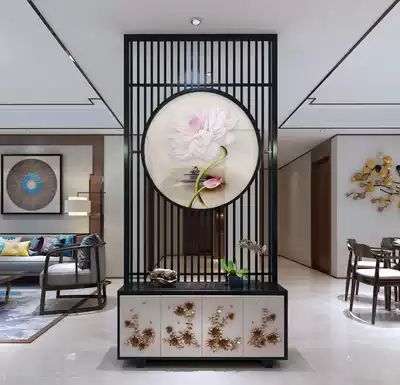 Home solid wood grille partition entrance Modern simple fashion living room Dining room aisle Tea shop wood grille screen