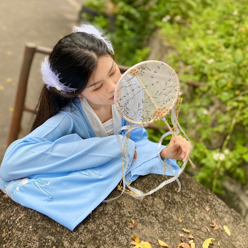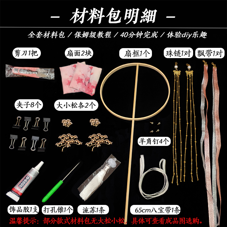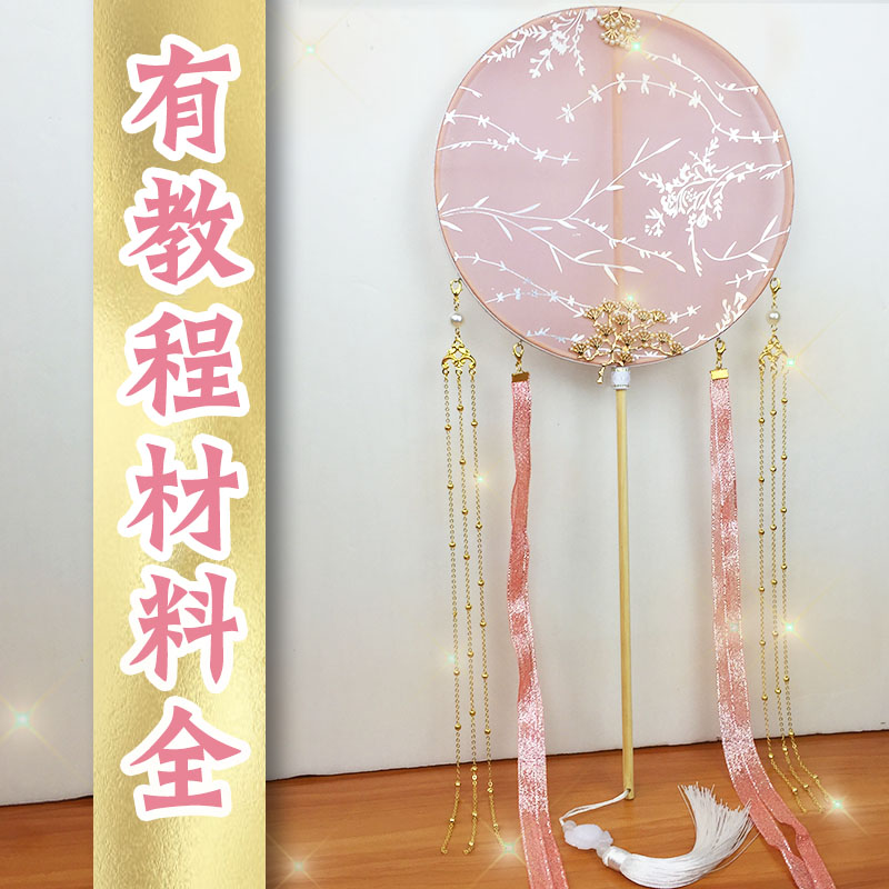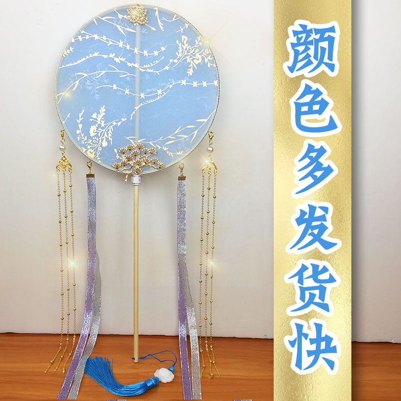 Ancient ancient wind classical long handle streaming Su Mission Palace fan diy material bag fan children Handmade props children handmade-Taobao