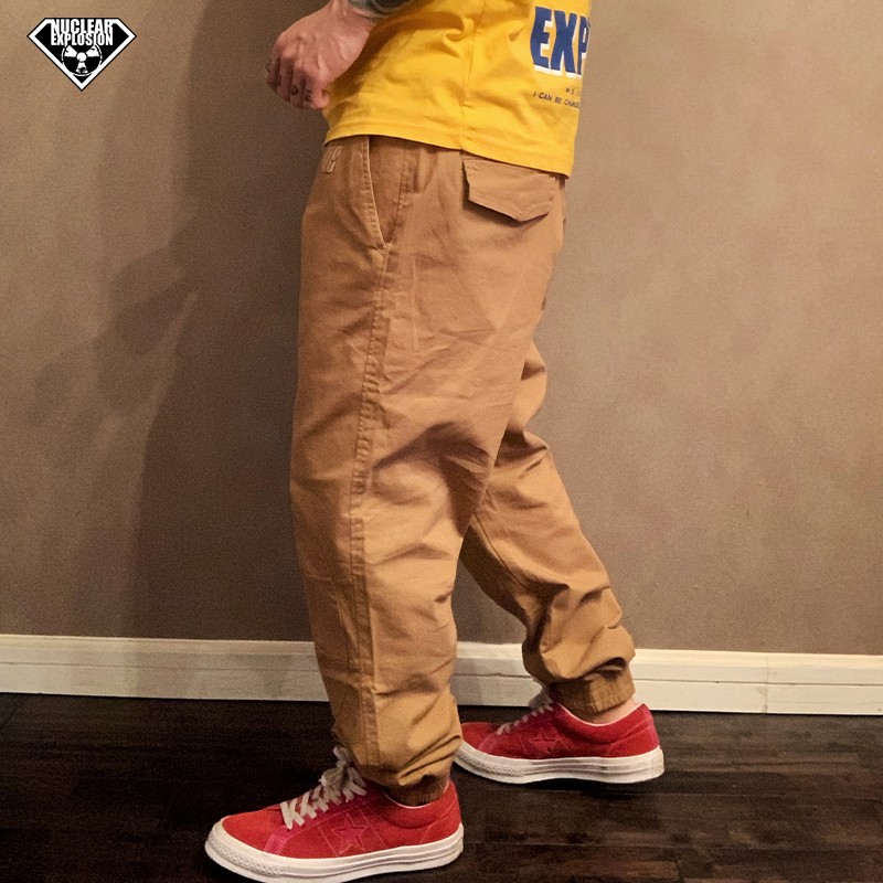 Nuclear Explosive Embroidered Card Its Deep Blue Patched Formula Tapered Small Feet Large Size Loose Hallen Tightness Lace Casual Long Pants Man