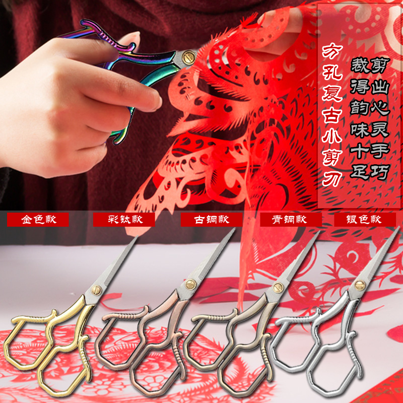 Classical literature brand new home cut stainless steel vintage square hole small scissors thread head cut cross stitch cut cloth scissors