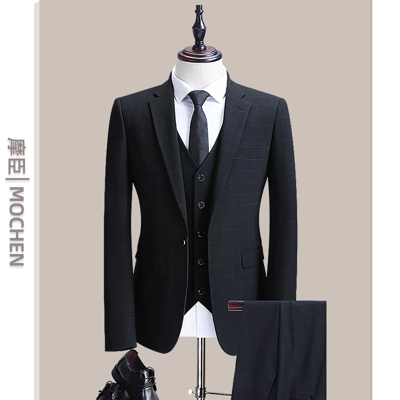 Groom's suit suit men's three sets of business elastic body gown authentic dress checkered wedding suit wedding suit