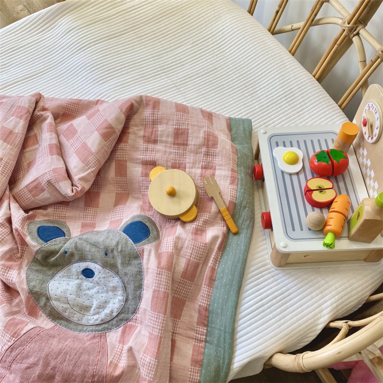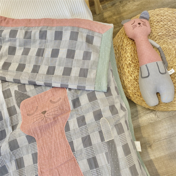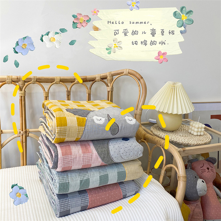 Cartoon Full Cotton Double Layer Yarn Summer Quilt Embroidered Organic Cotton Yarn Air Conditioning by A Type of Baby Kindergarten School Summer Cool quilt