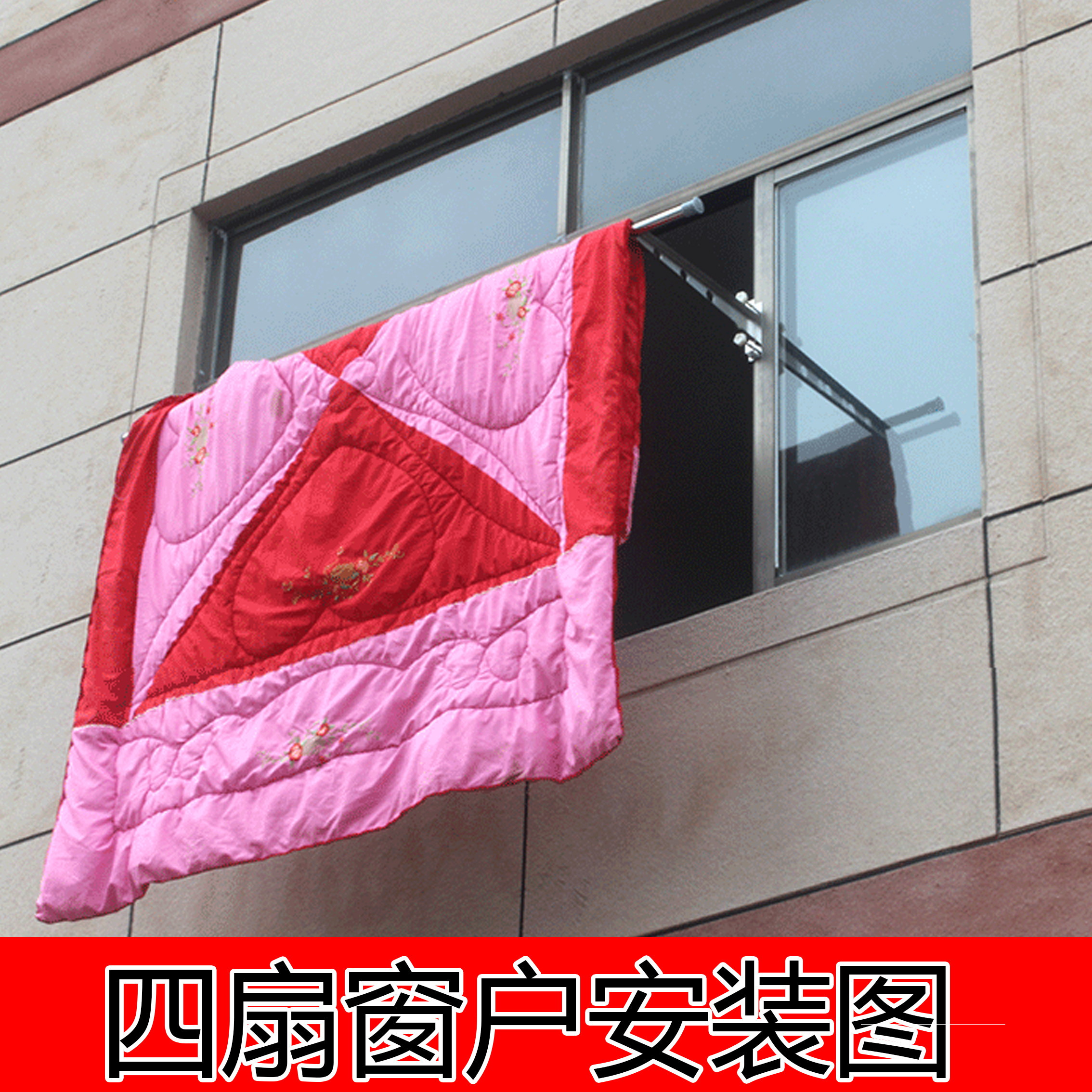 Stainless steel window drying rack window frame clothes rail guardrail home fixed single-pole anti-theft net sun is free of punching