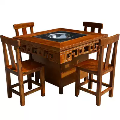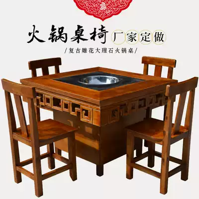 Marble solid wood hot pot table induction cooker integrated commercial smokeless hot pot table and chair hot pot restaurant table and chair combination
