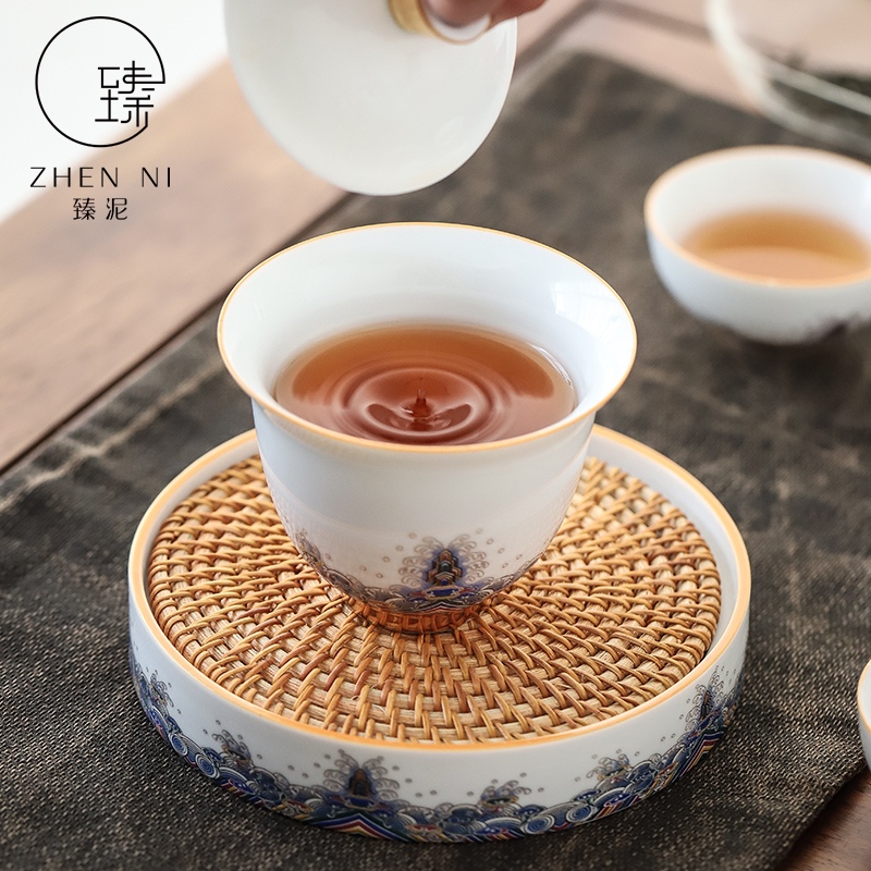 Zhen Mud enamel color gold silk cover bowl Hand-painted gold white porcelain three-color bowl Household Kung Fu tea with tea-making device Tea-making bowl