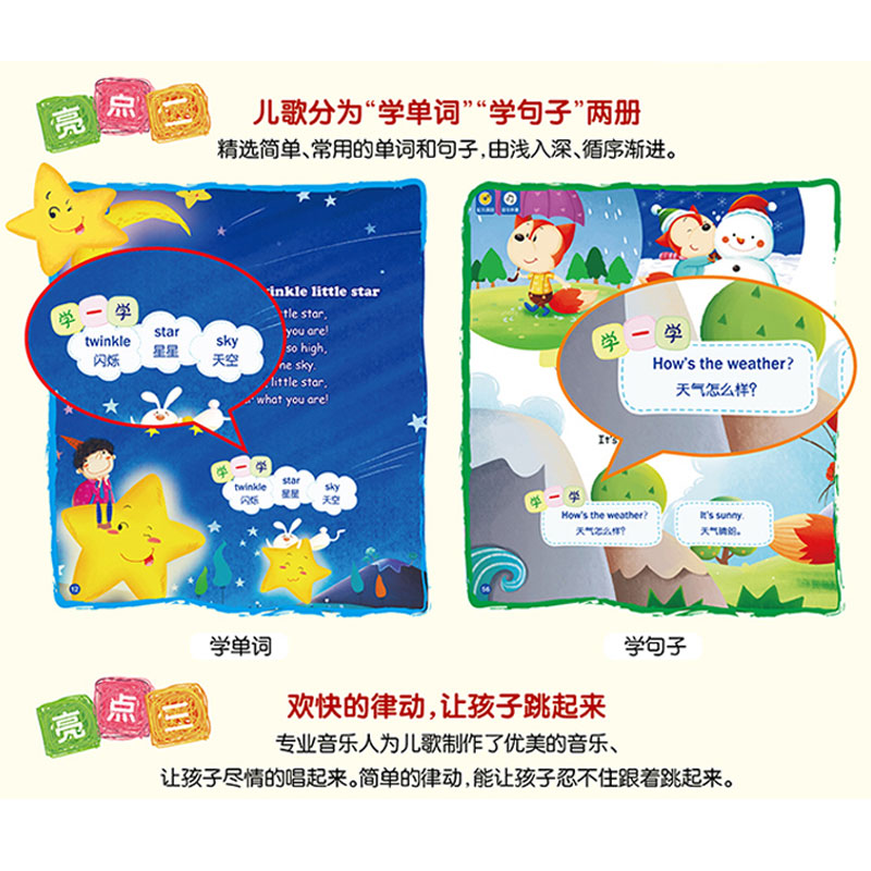 North American classic children's songs small human points reading pages 30 first classic songs to learn words, sentence 2 copies 2-7 years old children you have the sense you need when you speak English Enlightenment small people talking pen picture book pei tao shu