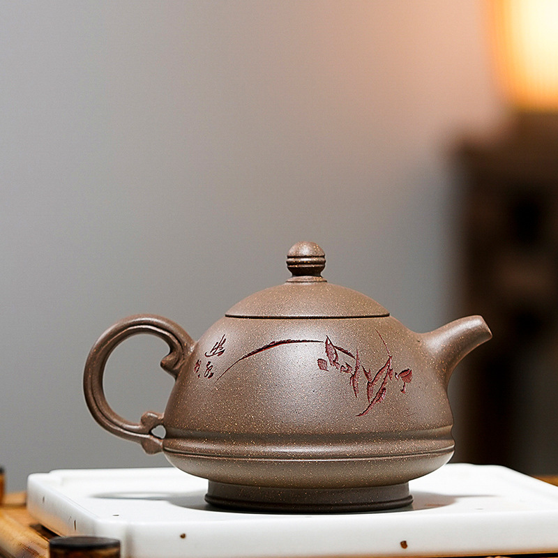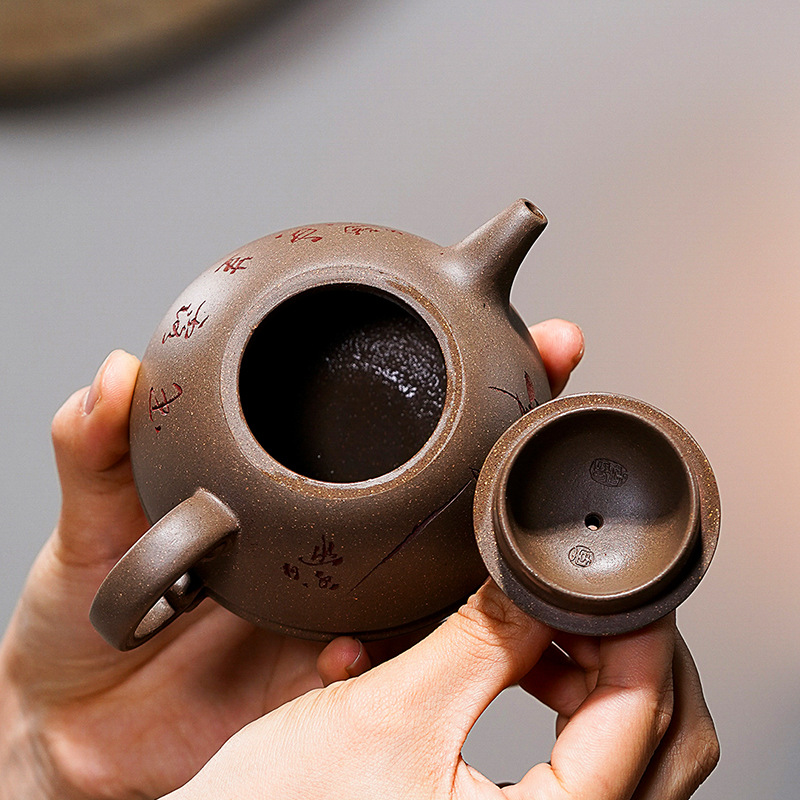 Lixing Purple Sand Pot Li Teacher Pure Entirely Handmade Raw Mine Green Grey Clay Jade Dew Carved Small Pint 200cc Inner Wall Zhang