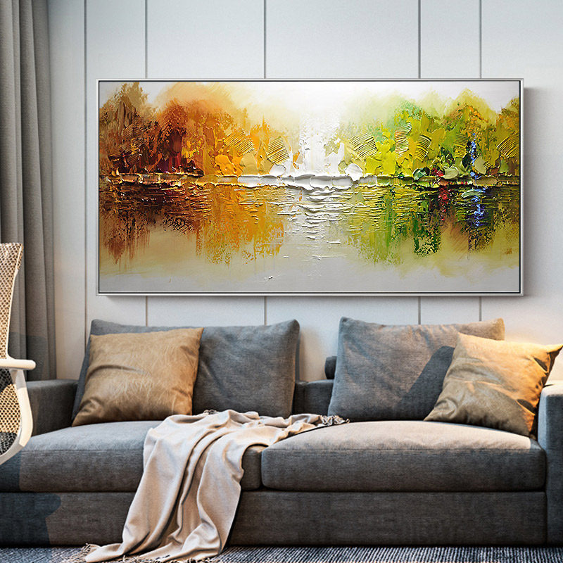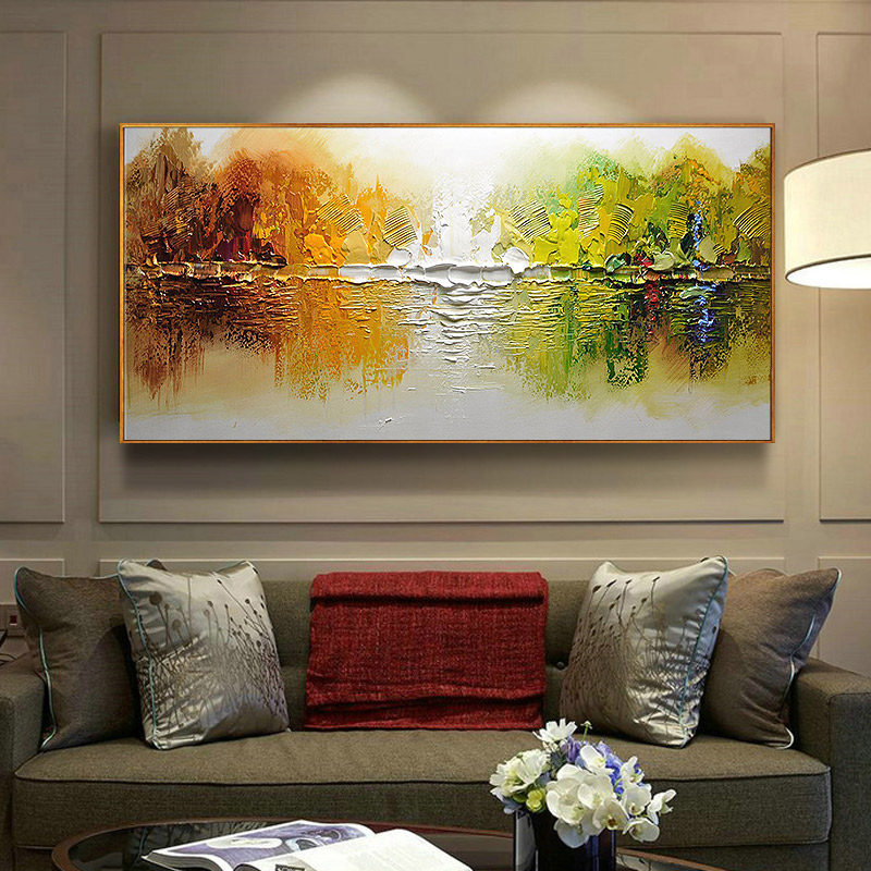 Light luxury pure hand-painted oil painting custom living room decoration painting sofa background wall painting horizontal version hotel model room mural