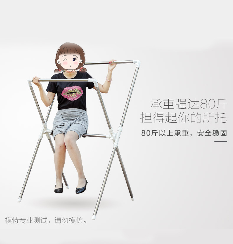 Home Clothes Hanger Folding Floor Style Stainless Steel Balcony Clotheshorse double-pole Easy Hostel Cool Hanger