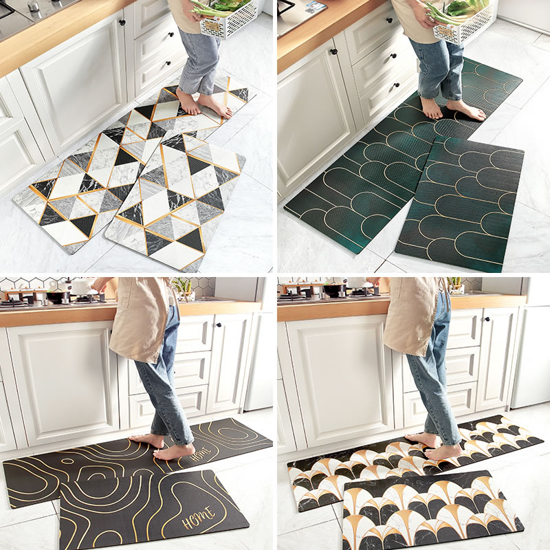 Dajiang Ground Mat North European Wind Network Red strip Kitchen Erasable free footbed Home Waterproof Oil Proof Carpet Leather Cushion