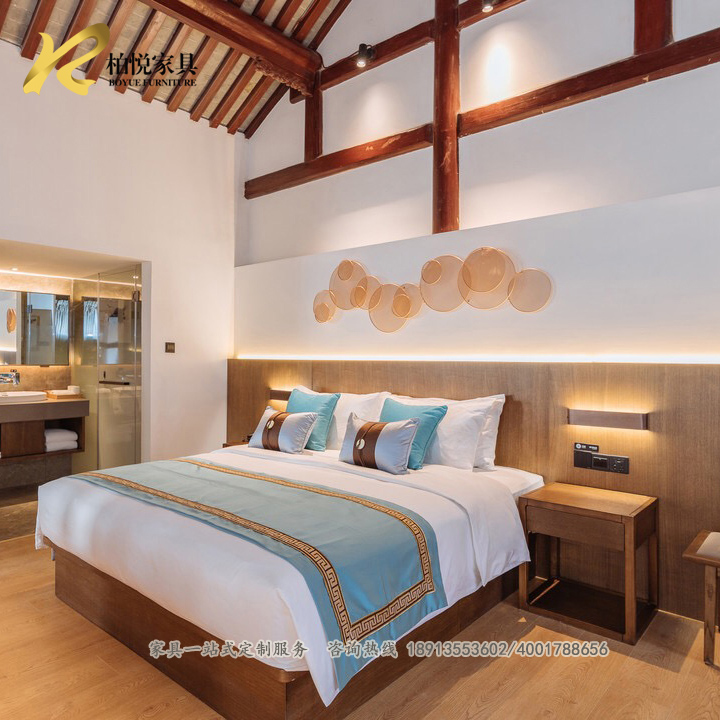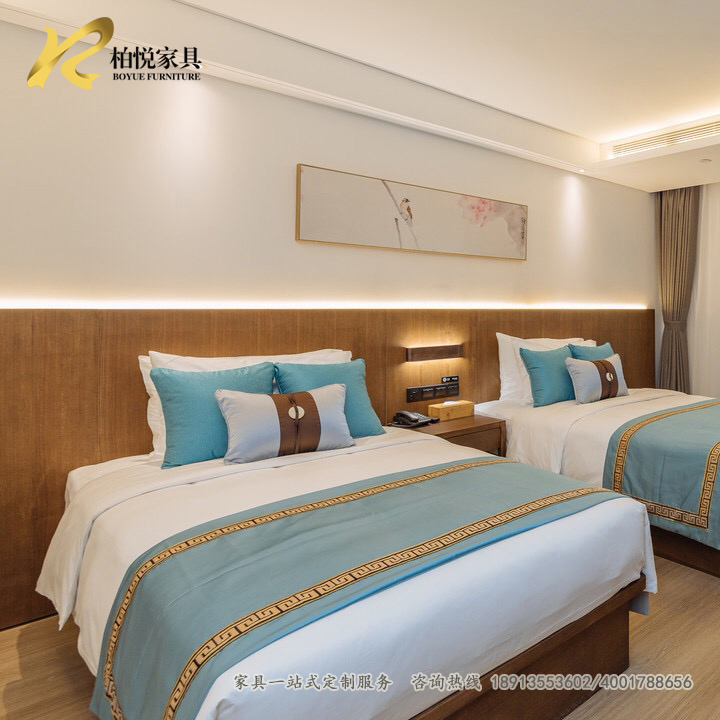 Hotel guesthouse furniture standard room bed full set of simple modern villa club homestay project custom factory direct sales