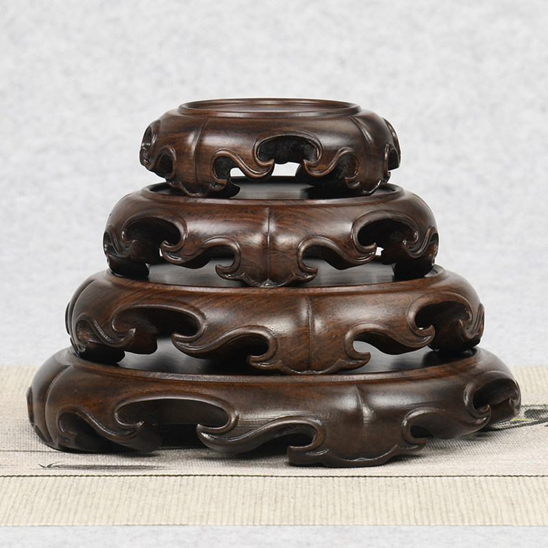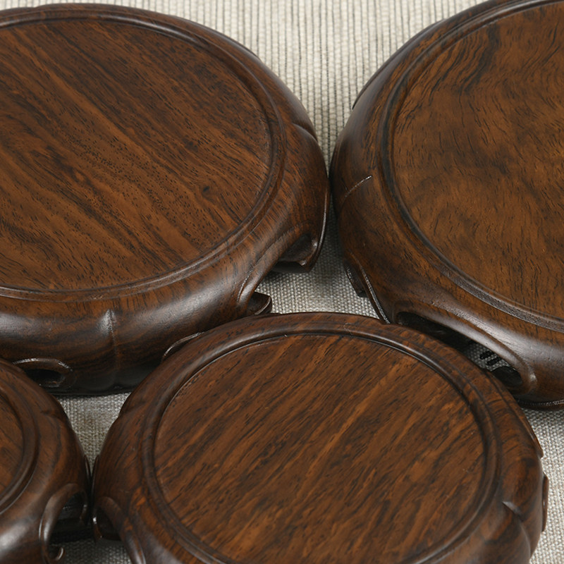 Mahogany round wood carving base Teapot stone Buddha statue Vase Flower pot base Wooden stone solid wood bracket ornament