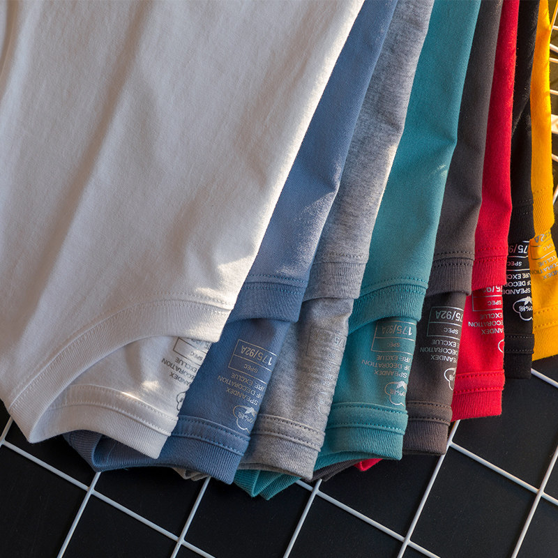 Short Sleeve T-Shirt Men's Cotton Summer Round Neck Loose Solid Color Clothes White Half Sleeve Large Size T-Shirt Trend Men's