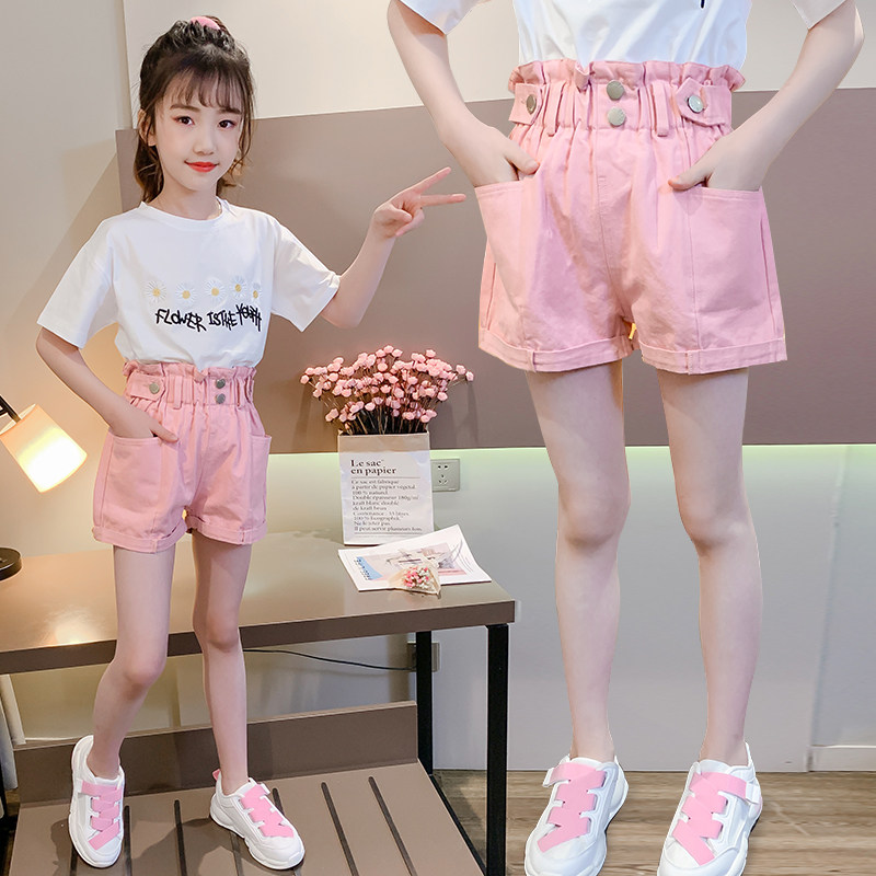Girls' pink high-waisted bud shorts summer thin section big children's foreign style three-point pants children's pants 2022 new