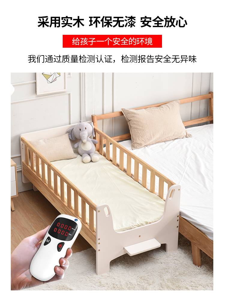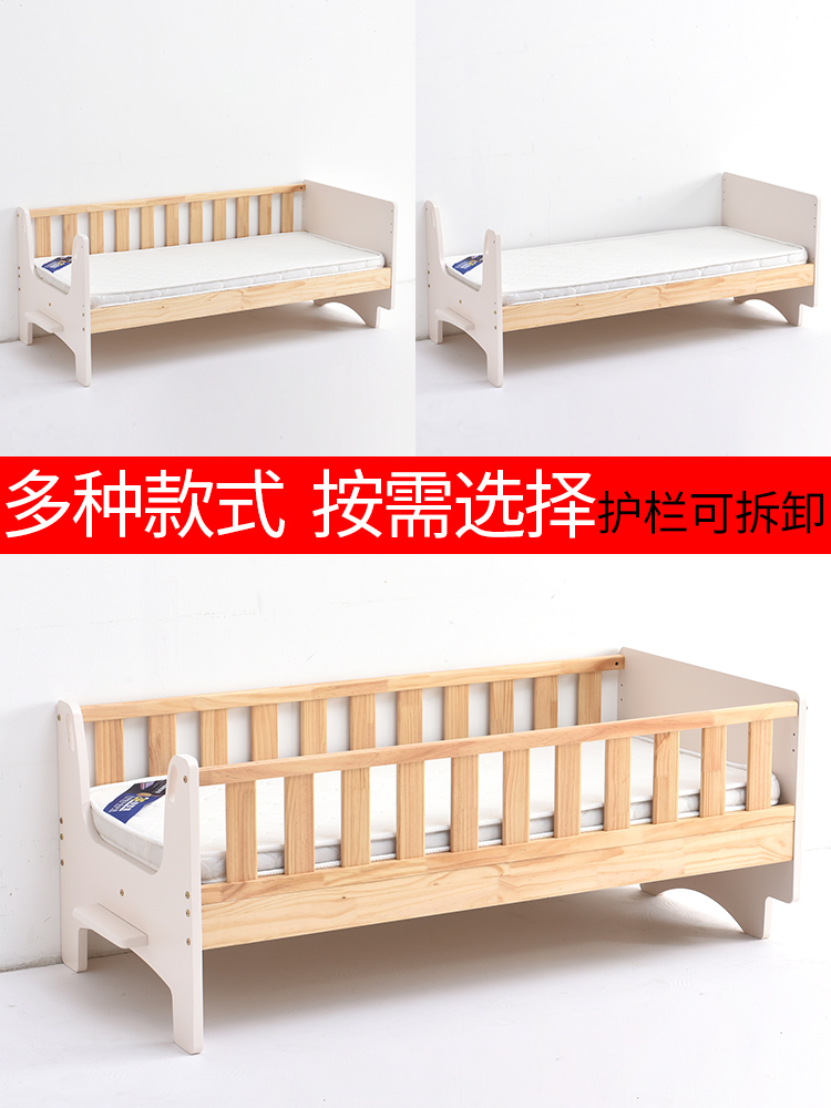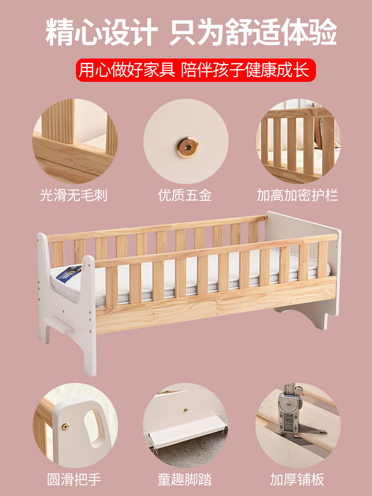 Solid wood children's bed with guardrail baby girl princess bed single bed widened extension small bed baby stitching big bed