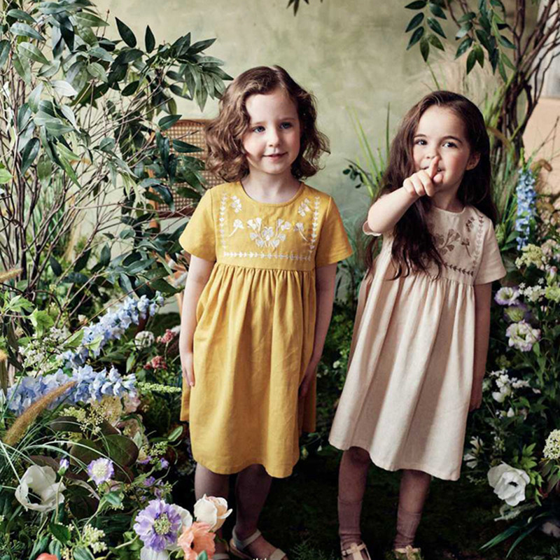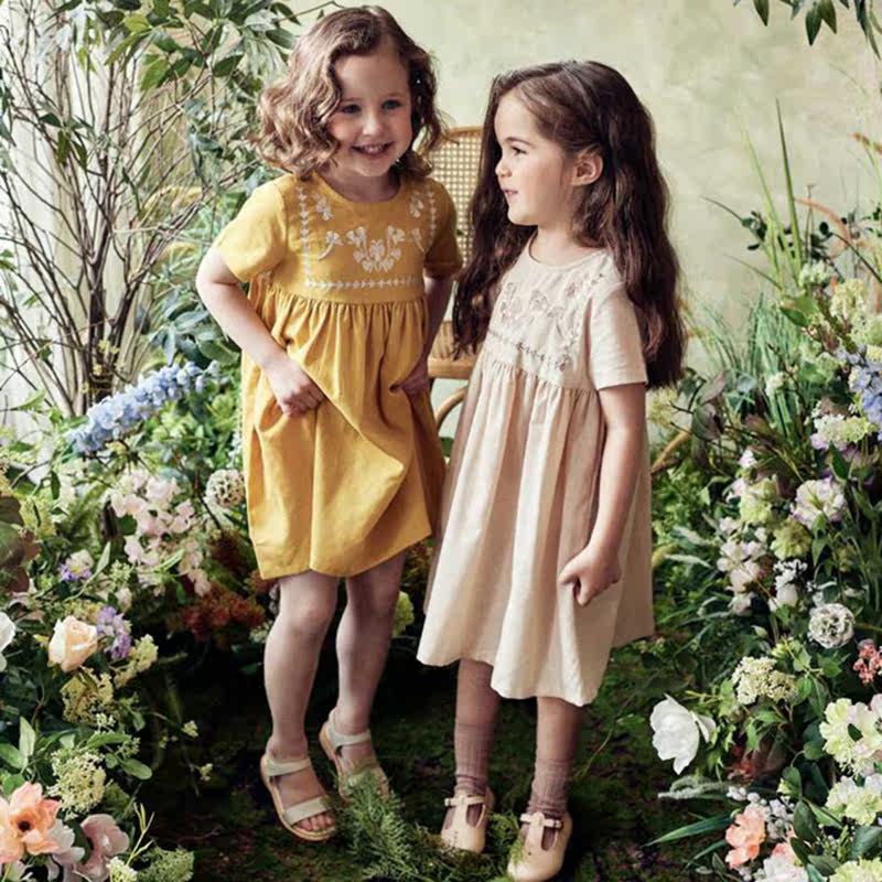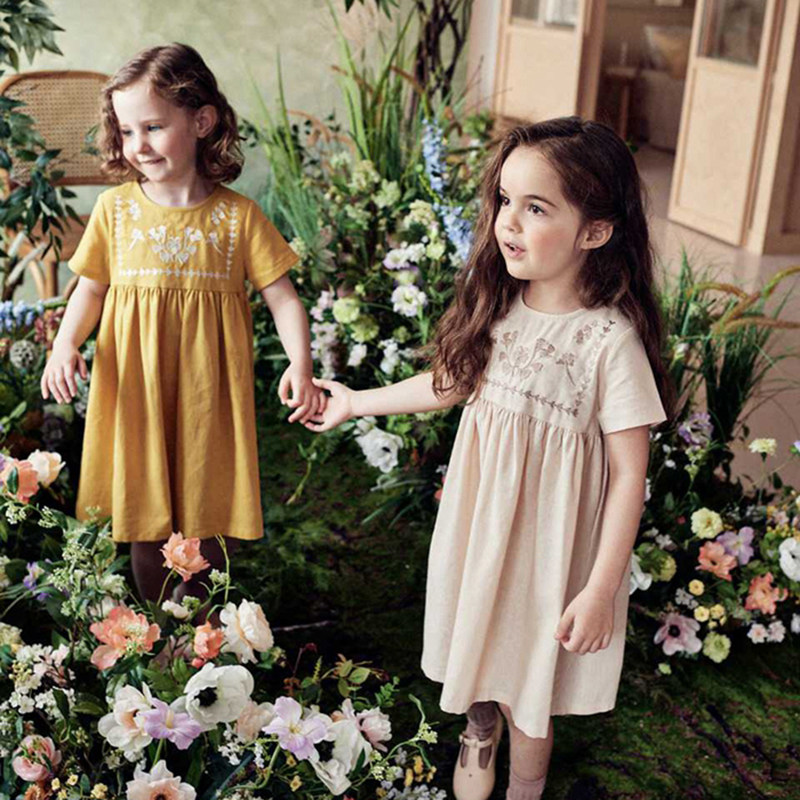 Girl Short Sleeve Ocean Dress 2022 Summer New Korean Version Children Dress Little Girl Foreign Pie Stitch Embroidered Lady Dress