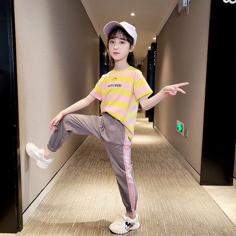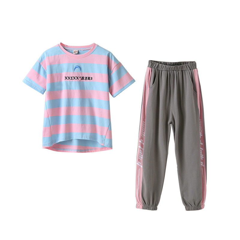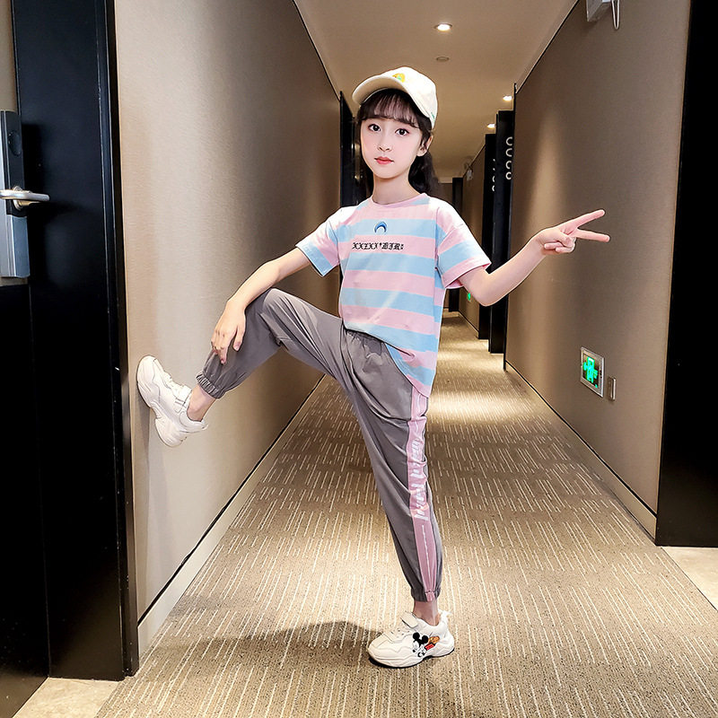Girl Suit Summer Tennis Red 6 Sports 9 Ocean Pie 12 Year Fashion Summer Clothes Children Pure Cotton Short Sleeve Long Pants Two Sets