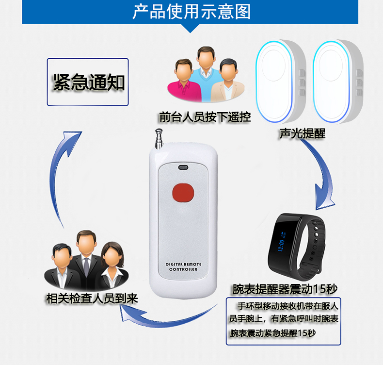 Foot Bath Massage Shop One Key Wireless Emergency Remote Remote Control Siren Hotel Emergency called instrumental Concealed Reminder