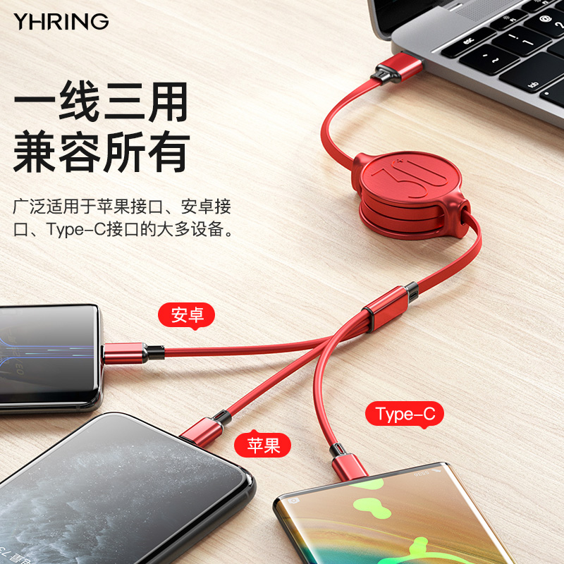 Three-in-one charge wire machine one drag more than three According to the line extension suitable for the Apple Android phone fast-charge multifunction multi-head flash-charge three-wire vehicular quick sprint triple use 3 multipurpose usb
