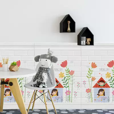 Wallpaper self-adhesive 3d three-dimensional wall skirt bedroom warm children's room wall veneer decoration anti-collision waterproof wallpaper