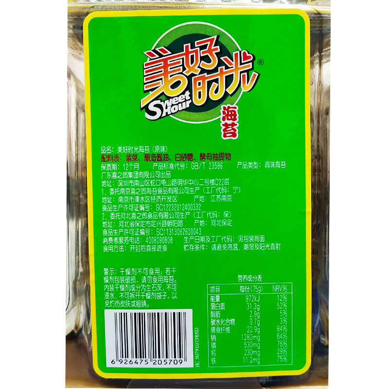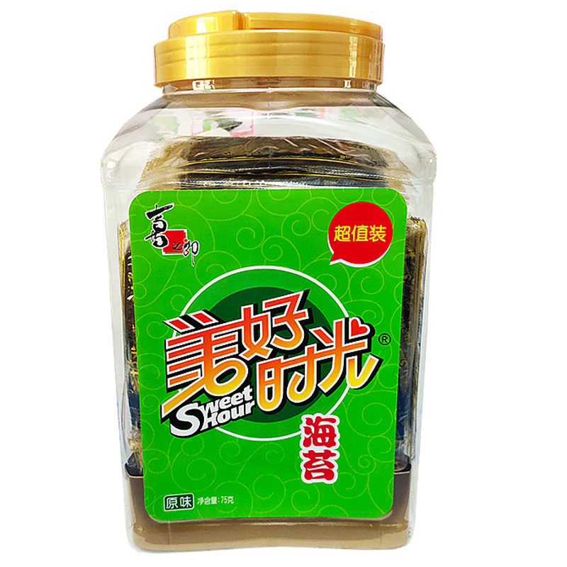 Good time seaweed barrel affordable canned original flavor 75g Ready-to-eat children's snacks Haitai Xizhilang Food