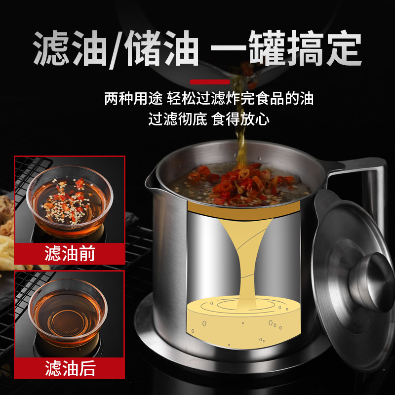 Filter Oil Pot oil tank with lid Kitchen Oil Storage Residue Tank Eu Style 304 Stainless Steel Bottling Oil Bottle Home Filter Oil God