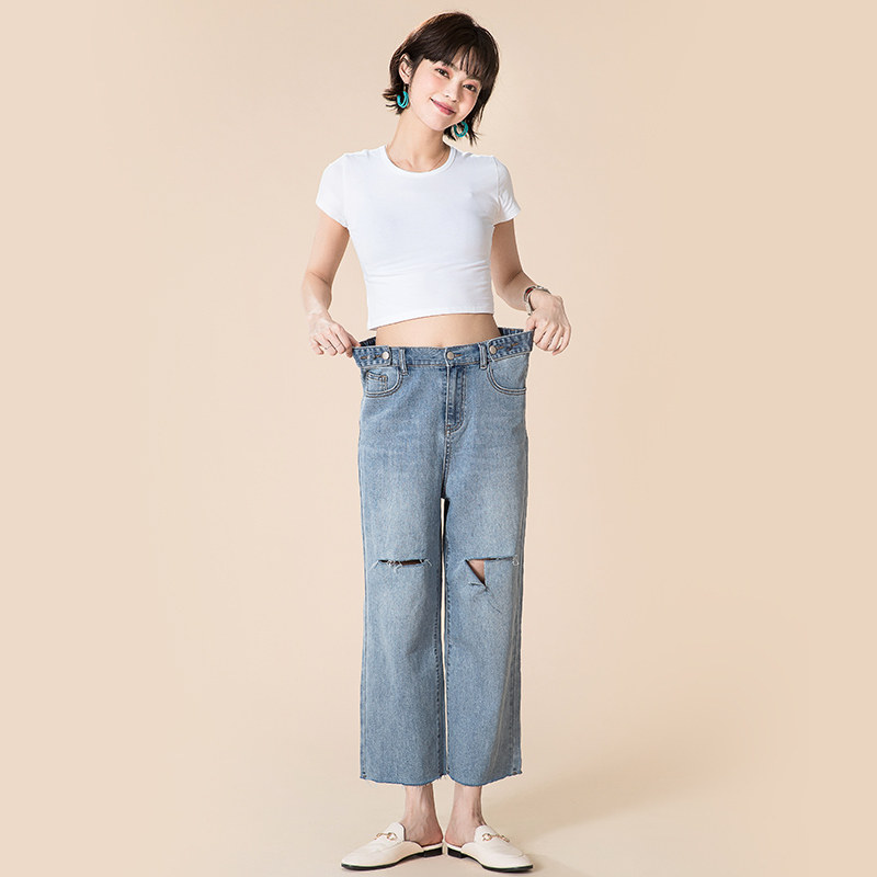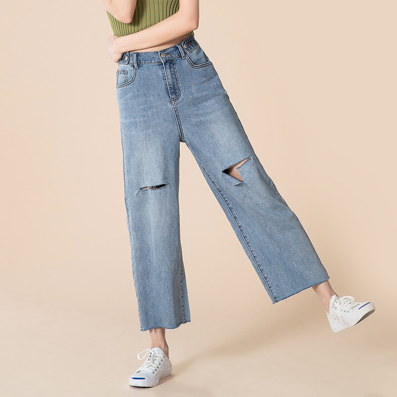 South Korea's Lets diet Hole Wide Leg Jeans Lady Straight Barrel Loose Slim 2021 New Thin Summer