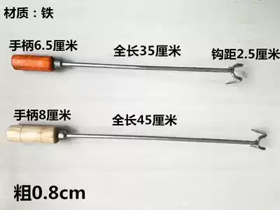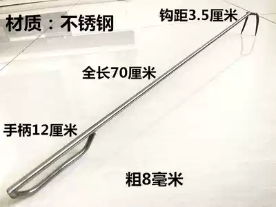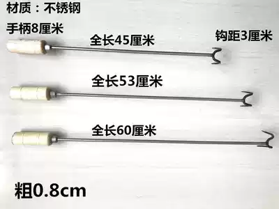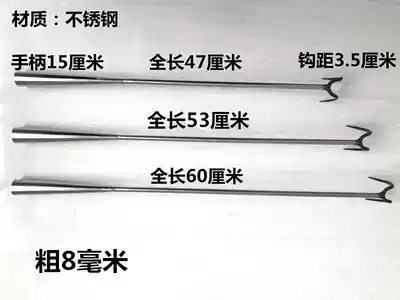 Stainless steel fishing meat braised fried button meat double hook soup hook grappling hook roast hook roast duck pork ditch wooden handle large thick hook