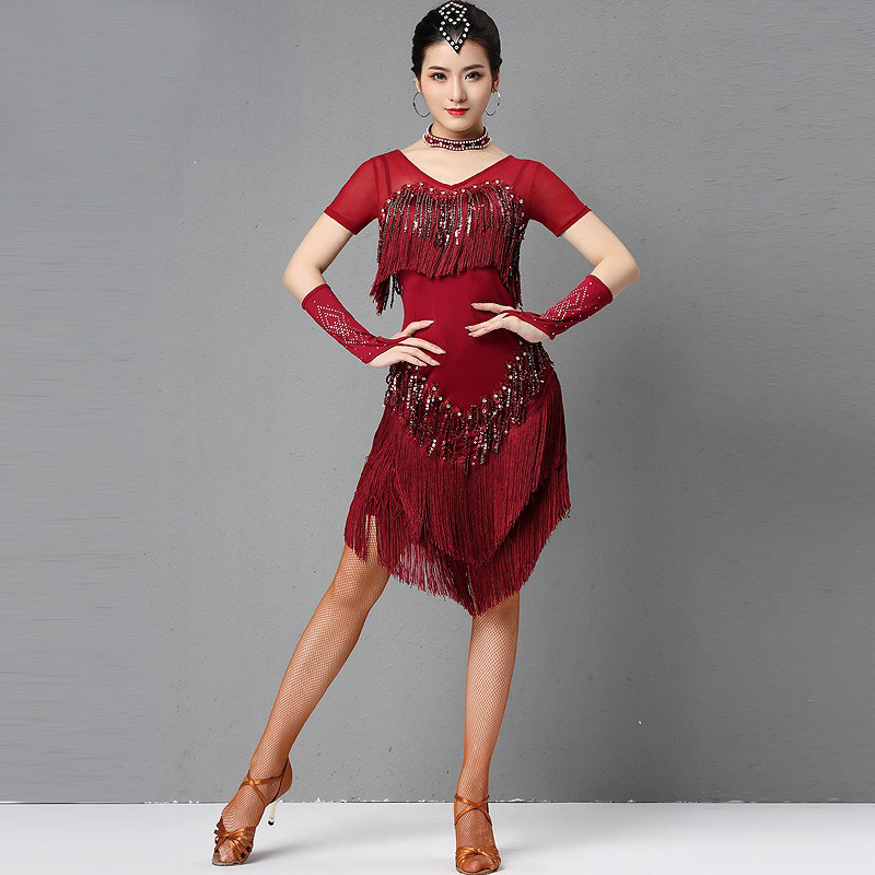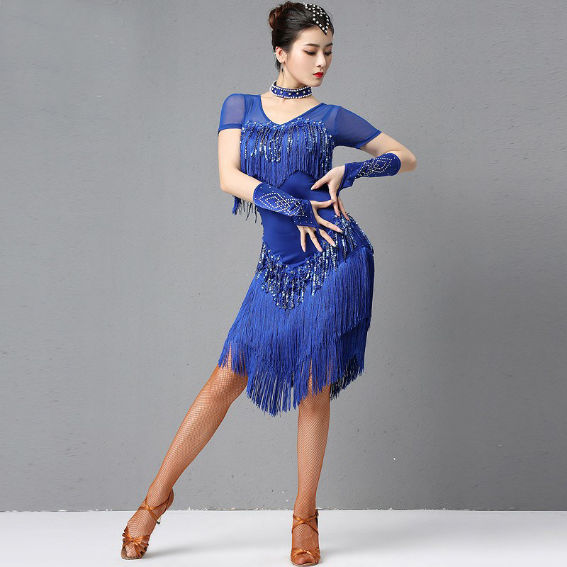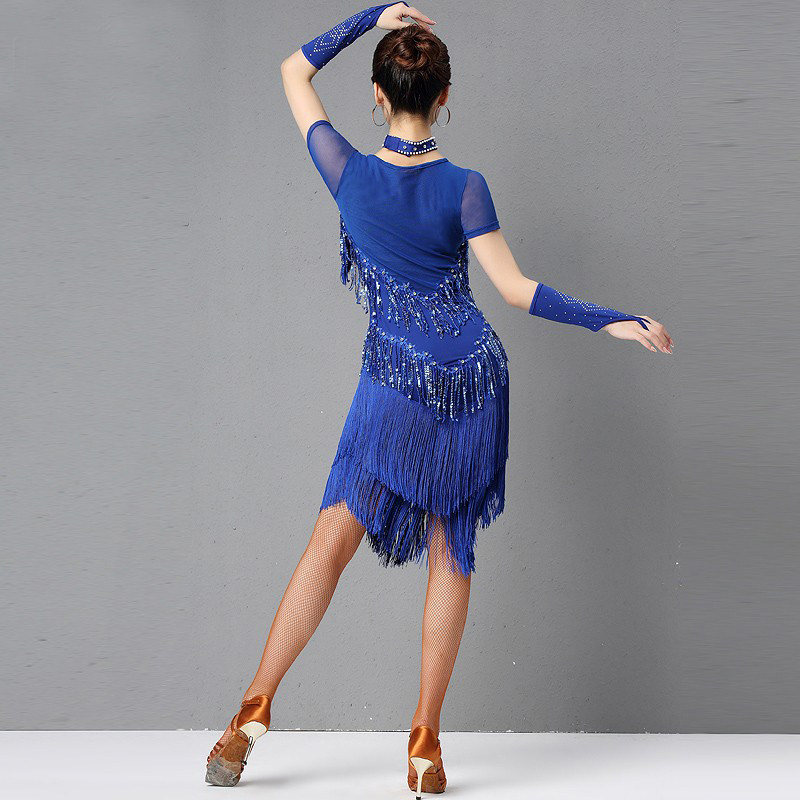 Sister's Colorful Latin Dance Professional Competition Performed Dress Practice Costume Female Adult New Sequin Fringed Dress
