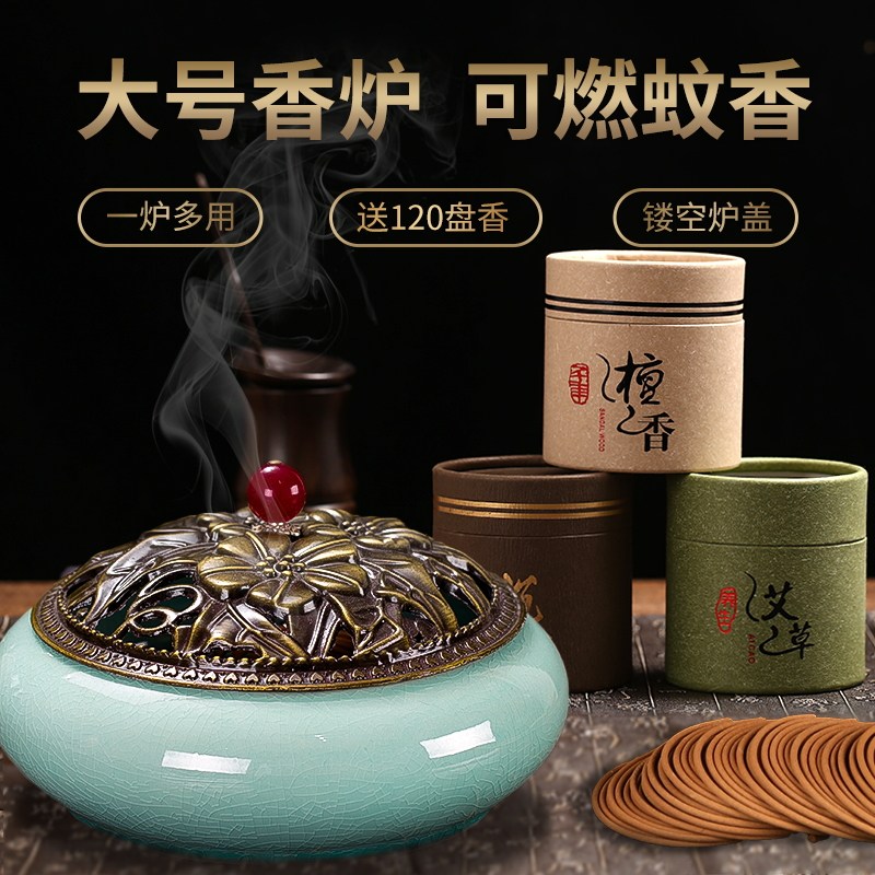 Household large mosquito coil tray indoor incense sandalwood stove creative ceramic with lid household fire-proof incense burner ornaments