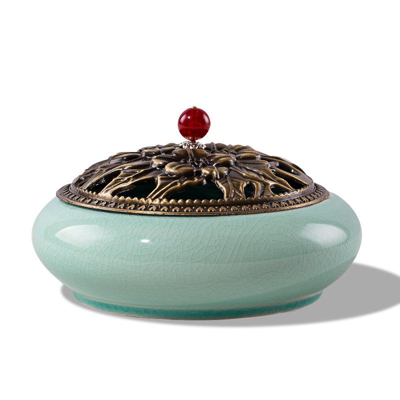 Kiln incense burner sapphire blue (small) send (fireproof cotton) ice crack incense stove sky blue (small) send (fireproof cotton) Geyao Kiln plum (big) send (fireproof cotton mosquito rack) Cove Blue (big)