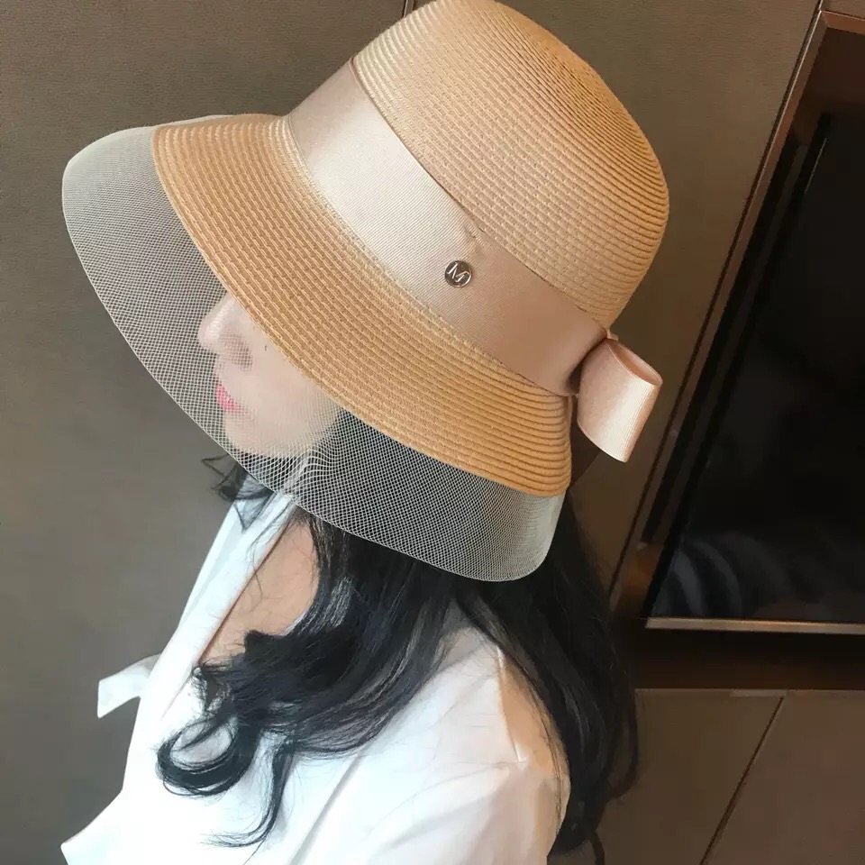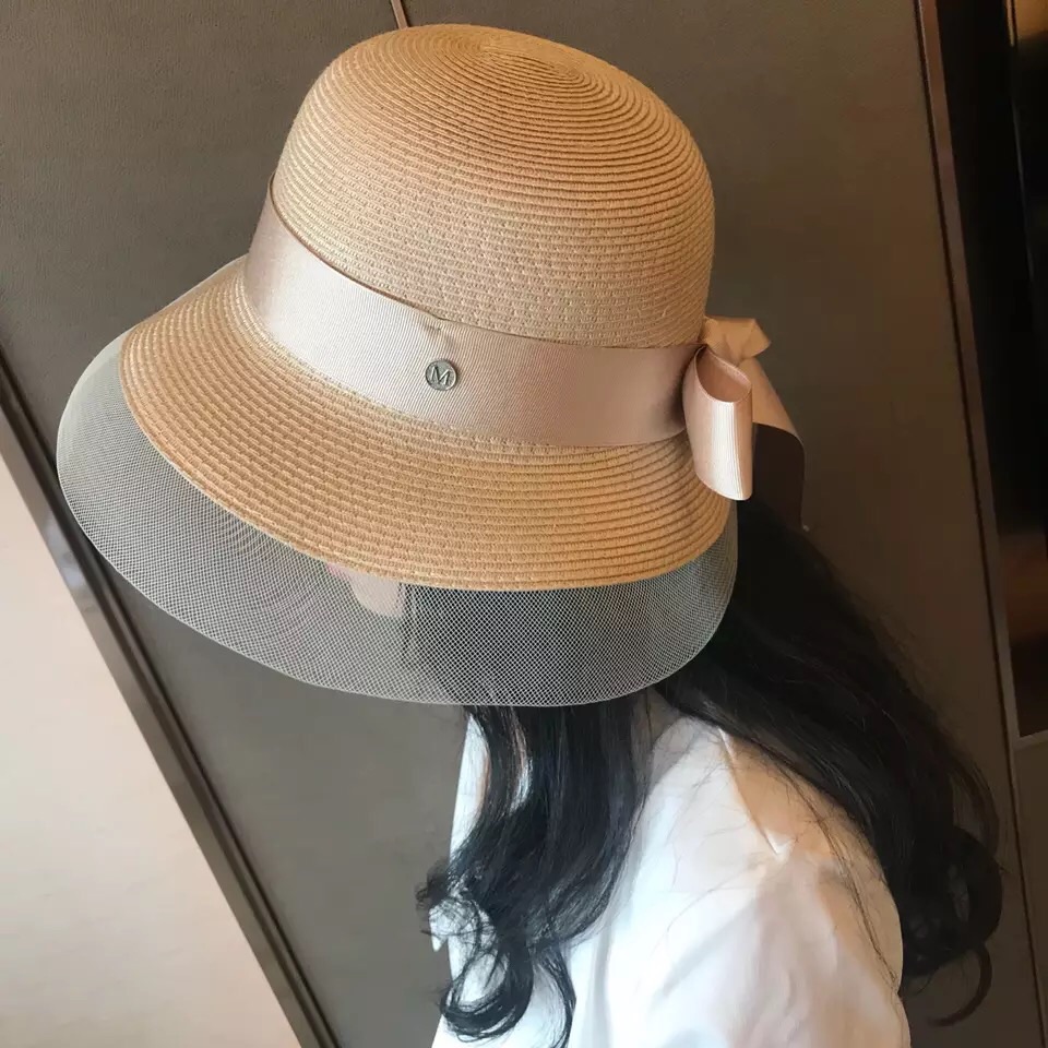 French summer elegant mesh stitching Hepburn wind fisherman straw hat female sunscreen sunshade sun hat big brim hat female