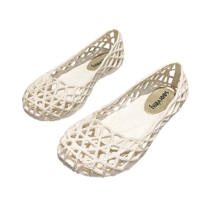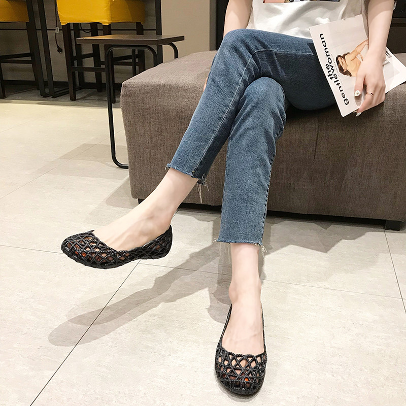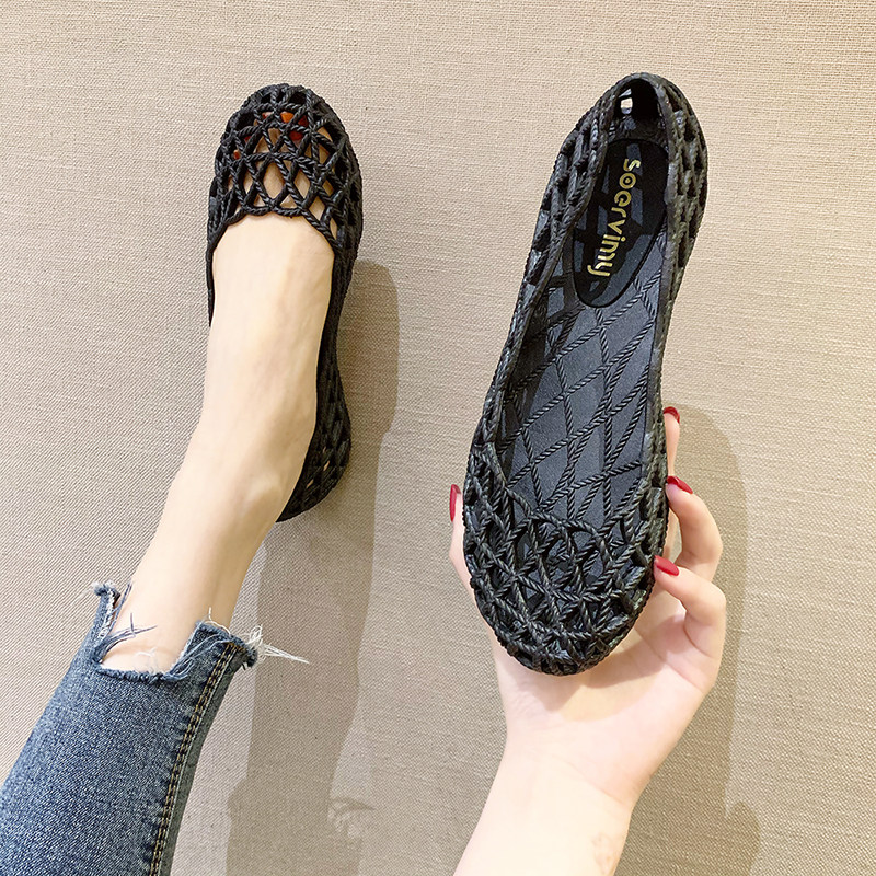 Hollow rain boots women's fashion outer wear jelly soft bottom breathable nurse sandals waterproof shallow mouth plastic hole beach shoes