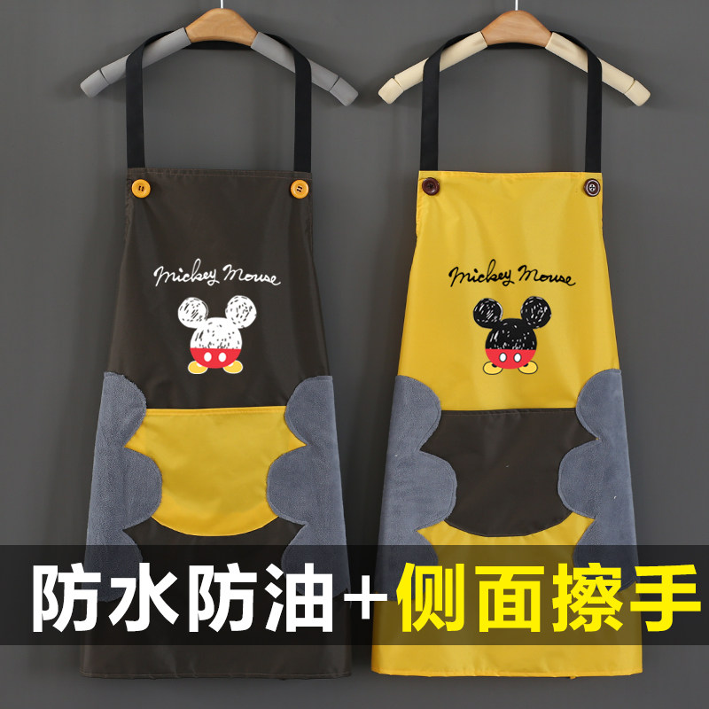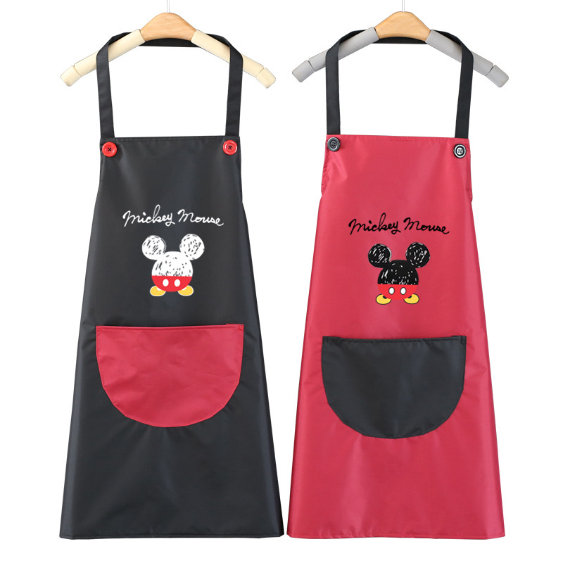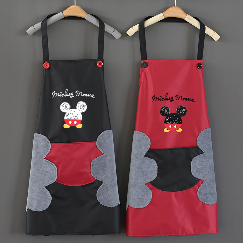Hanging neck waterproof micky head black bottom grey pocket hanging neck waterproof micky head white bottom black pocket hanging neck waterproof Mickey head black bottom red pocket hanging neck waterproof Mickey head café bottom yellow pocket can rub hands hanging neck waterproof Mickey head black bottom