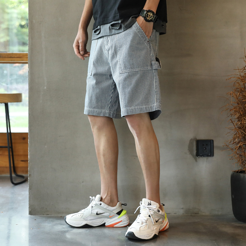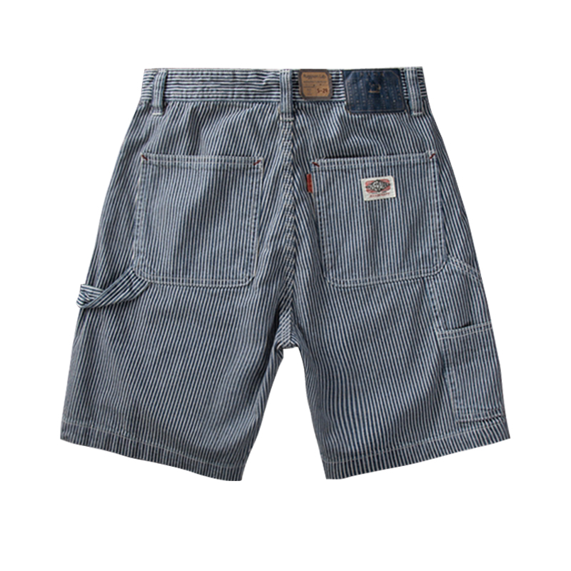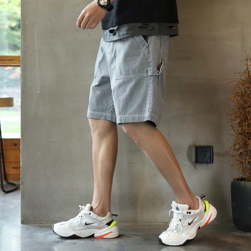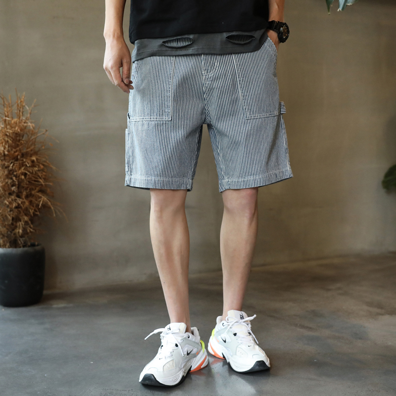 Tide Card Striped Denim Shorts Male summer new outwear Loose Straight Barrel Casual Sports Currents Ins 50% Pants