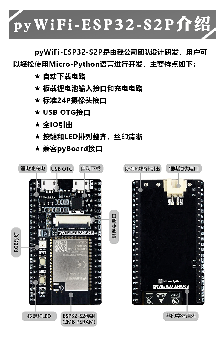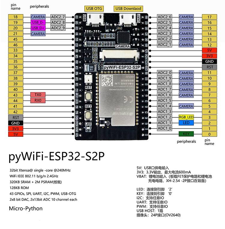 ESP32-S2 development board TFT touch screen LVGL USB camera captures WiFi graphics Python programming
