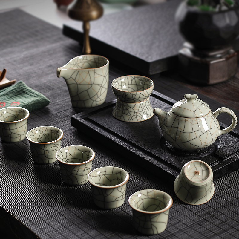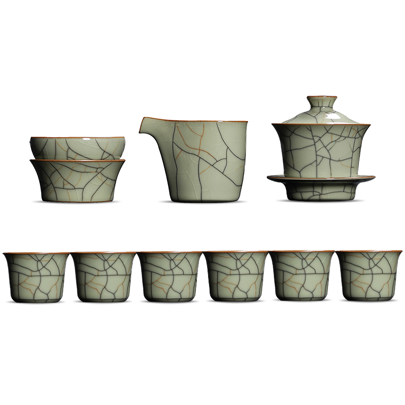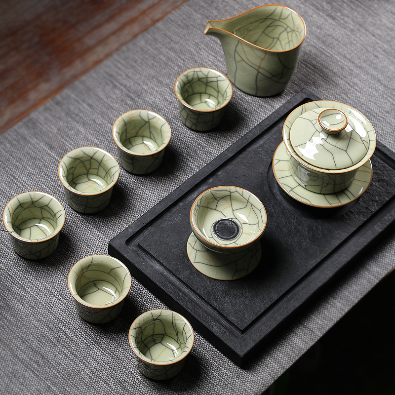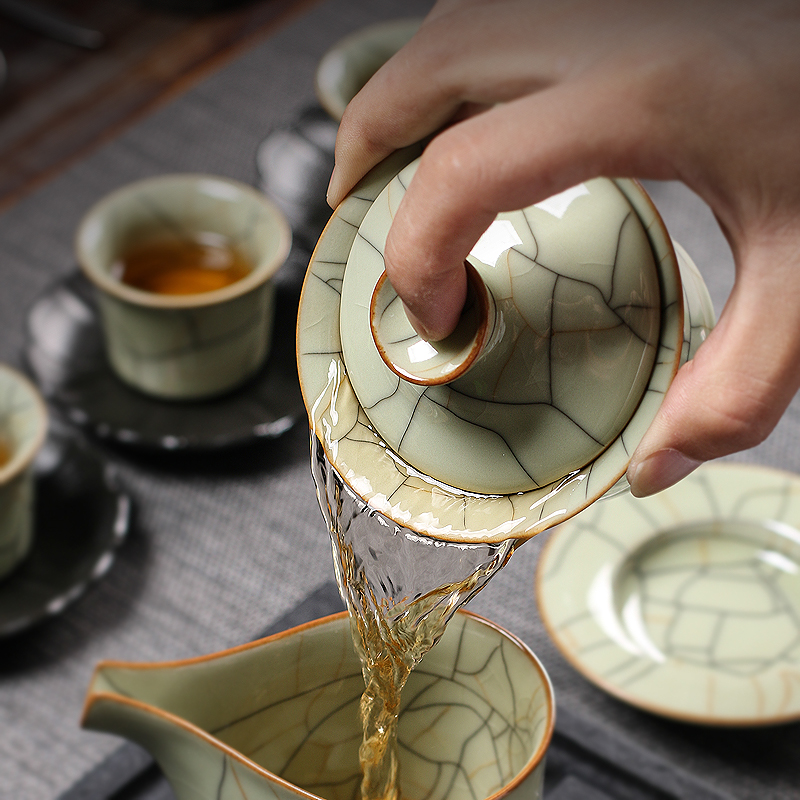 Longquan Celadon Kung Fu Tea Set Lid Bowl Teapot Brewing Tea Home Ceramic Teacup Heirloom Kiln Golden Wire Wire Set
