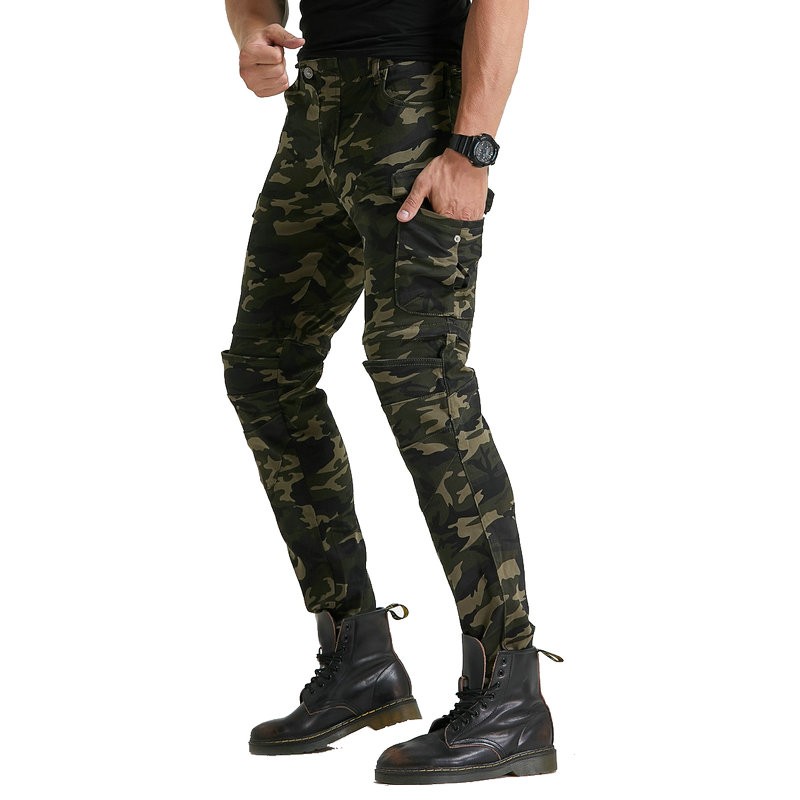 2020 new camouflak tooling multi-bag locomotive jeans male locomotive elastic anti-fall riding pants shorts